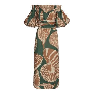 . NEW Johanna Ortiz x HM Womens Floral Crepe Ruffle Midi Dress. Spirit Of The Era Printed Silk Dress - Brown Multi 1110 1850. Shop lively prints and sophisticated silhouettes that portray barefoot glamour.
